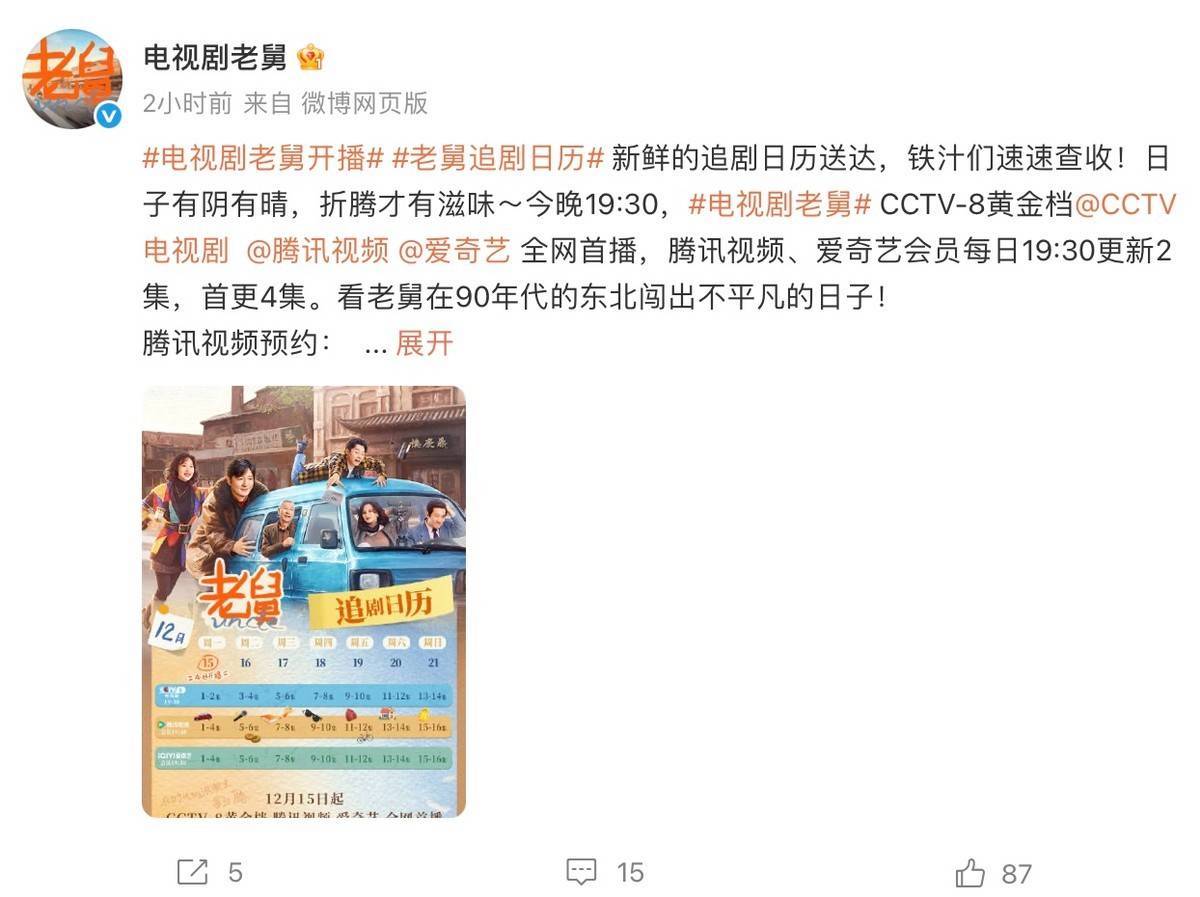 但就在大家翘首以盼之际,央视八套率先放出“王炸”,12月15日今晚黄金档,接档《大生意人》的27集东北年代轻喜剧《老舅》正式开播。