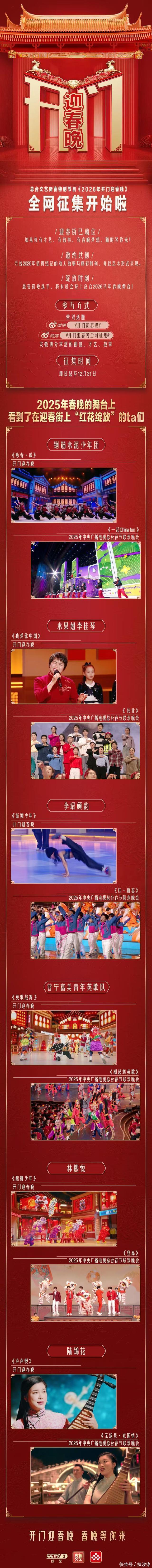 资深媒体人杜恩湖为您报道 今天是12月7日,中国农历大雪节气。距离2026年2月17日农历春节,还有70天。今天中午2时,一位多次参加过央视春晚演出的演员独家披露:央视2026年马年春晚剧目已经在北京正式成立了,主创们正在紧锣密鼓地秘密打造新的原创节目。 这位演员介绍,她和其他演员已经收到了春晚邀请函。还与春晚主创的老师,面对面探谈过创新节目。 当问到央视2026年春晚总导演是谁? 这位演员神秘地说,她知道总导演的名字,但就是不告诉我。因央视2026年马年春晚,仍然有严格的保密规定,剧组与演员签约有保密协议。不能私下披露央视春晚任何信息。 据悉,2026年马年春晚总导演的名字,目前,央视尚未官宣。仍在保密中。 但春晚的节目,剧目主创正在低调高效秘密打造春天新节目。据了解,央视马年春晚的节目,在几十台地方卫视春晚中,作为“国家队”,央视春晚精彩纷呈,极有创新力。令全国观众和网友特别关注和期待。 12月3日,央视春晚官方官宣——2026马年春晚全网征集节目!“开门办春晚”的口号一喊,评论区瞬间炸锅,12小时留言破万。证明网友和观众还是非常关注央视春晚。 央视春晚从1983年开始创办,至今已成功创办42年了。在邓在军、袁德旺、邹友开、孟欣、郎昆、金越、哈文、陈临春、杨东升、于蕾等一代代春晚总导演的精心打造下。春晚已成为了央视的“文化黄金品牌”。随着网络的短剧短视频的兴起,近几年的央视春晚,紧密结合网络、融入网络,春晚节目贴近时代,不停创新,已经是越办越好,越办越精彩。 2026年春晚,仍然备受观众关注。剧组仍然坚持继续开门办春晚。把舞台交给老百姓,倾凰交流群不管你是深耕舞台多年的专业演员,还是藏在民间的绝活达人,哪怕只是有个灵光一闪的好点子、一段戳心的小故事,都能通过专属通道到春晚报名。把你的好点子奉献给春晚,让全国人民除夕夜高兴。 另外了解了到:除了央视春晚令人期待外,在全国观众中。享有盛誉的地方卫视春晚,如北京卫视春晚、辽宁卫视春晚、东方卫视春晚、湖南卫视春晚、浙江卫视春晚、广东卫视春晚、川渝卫视春晚,西藏卫视春晚等都已经相继成立了自己电视台的春晚剧组。各自开始打造自己的特色春晚节目。 延伸阅读 中央广播电视总台春节联欢晚会,是国家项目,与奥运会开幕式等同;中央电视台第一次办春晚的时候这场晚会一开始连名字都没取,眼看着离节目上演还有10天,才有了“春节联欢晚会”六个字。 “春晚”的雏形最早可追溯到1956年,中央新闻纪录电影制片厂出品的纪录影片《春节大联欢》,徐玉兰、新凤霞、梅兰芳、侯宝林、老舍、巴金等都参与演出3 1979年,中央电视台录制、播出了“茶座式”晚会,名为“迎新春文艺晚会”,不过,因为1979年全国的电视机不过485万台,没有产生社会影响。1983年,中国的电视业进入到了一个相对稳定和快速发展的阶段,电视业的快速发展,电视的普及,为春晚的产生提供了技术前提和保障。而当时,正值改革开放初期,人民的物质生活逐渐改善五十路,但文化生活始终较为匮乏,获得信息的渠道很少,娱乐方式较为单一。基于此,中央电视台借助电视手段向全中国人民演绎了春节这样一个隆重的文化事件,为全国人民奉上一道精美的文化盛宴