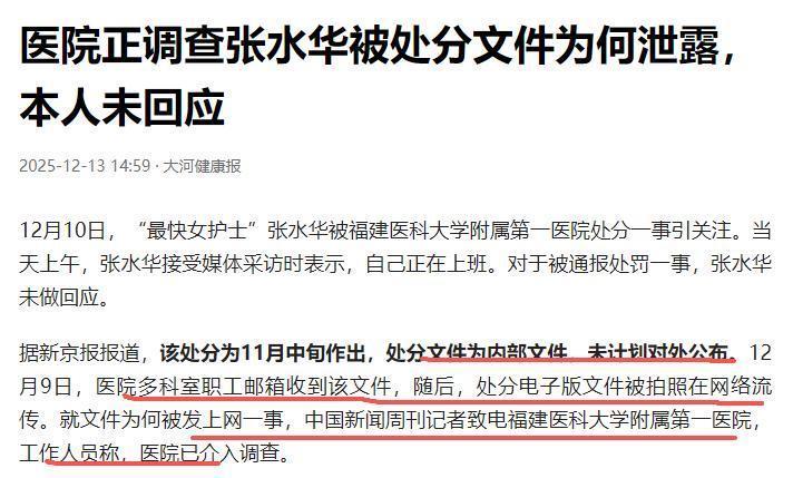 一周前,建医科大学附属第一医院的内部处分通告,直接让“最快女护士”张水华,陷入了舆论纷争。