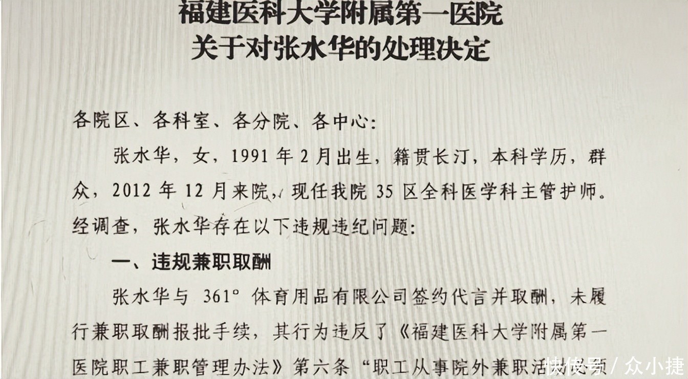 大家都知道这第一点,“违规兼职取酬”指向的是商业化与职业身份的冲突,表面上张水华是医院职工,但其实她早在2023年就已签约某运动品牌。成为有偿代言人。