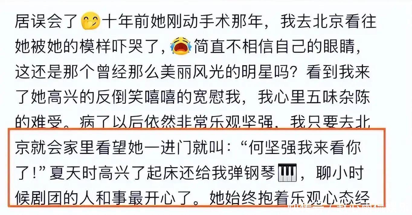 命运似乎总在考验她。十年前,何晴被确诊患上脑瘤,随之又经历了中风的侵袭。病魔的折磨让她与病床相伴了整整一个十年。但她从未轻易放弃,无论是积极配合治疗,还是在心底默默憧憬重返舞台,她始终怀揣希望。正如她曾说过,她希望能像李雪健老师那样战胜病魔,继续为观众奉献精彩的作品。病情没有如她期待的那般向好发展,她最终未能完成这个执念。