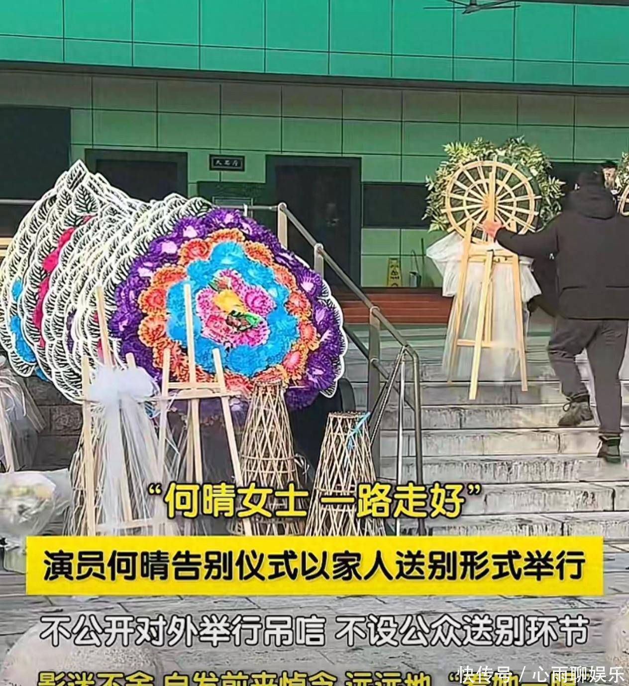 灵堂布置简朴,工作人员忙于组装纸扎花圈,花圈数量众多,几乎占满整个灵堂。这一安排反映了何晴近年来的低调生活。她在过去十年中几乎未参与影视作品的拍摄,社交圈也相对缩小。媒体的报道集中在灵堂的布置及参加人员的身份,引发外界对她生前人际关系的讨论。