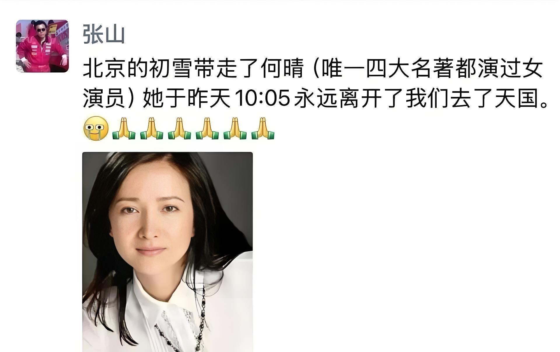 愿这场雪能陪她安稳上路亲姐弟,愿天堂再无病痛,只有她喜欢的宁静与从容。何晴老师,一路走好——你的角色不朽,你的温柔永存。