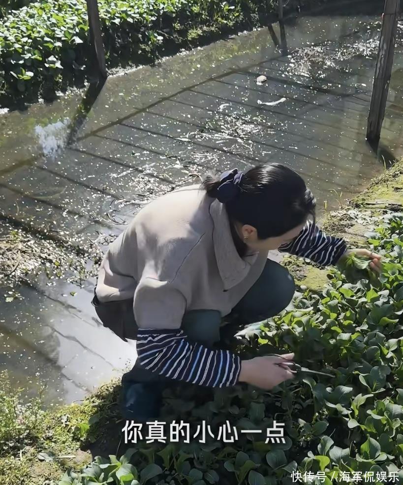 这分明就是咱们自己过年回老家,想帮爸妈干点活却笨手笨脚添乱的样子。她嘟囔着“又得洗衣服了”,语气里没有半点明星的包袱,只有劳动后一点小小的狼狈和释然。