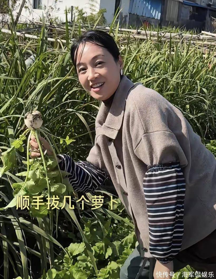这个场景发生在2025年12月的浙江金华。 朱丹脱掉了在都市里常穿的精致外套,套上父亲递来的长筒水靴,头发随意一挽,就下了田。 她要割的是女儿最爱吃的茭白。 金华的冬天雨水充沛,田里满是水洼,她一边熟练地摘菜,一边说自己小时候常干这活。 但毕竟离乡多年,手脚生了,一使劲就出了状况。 这种真实到有些滑稽的瞬间,通过网络传播开来,让很多人看到了明星身份之外,一个女儿、一个母亲最本真的状态。